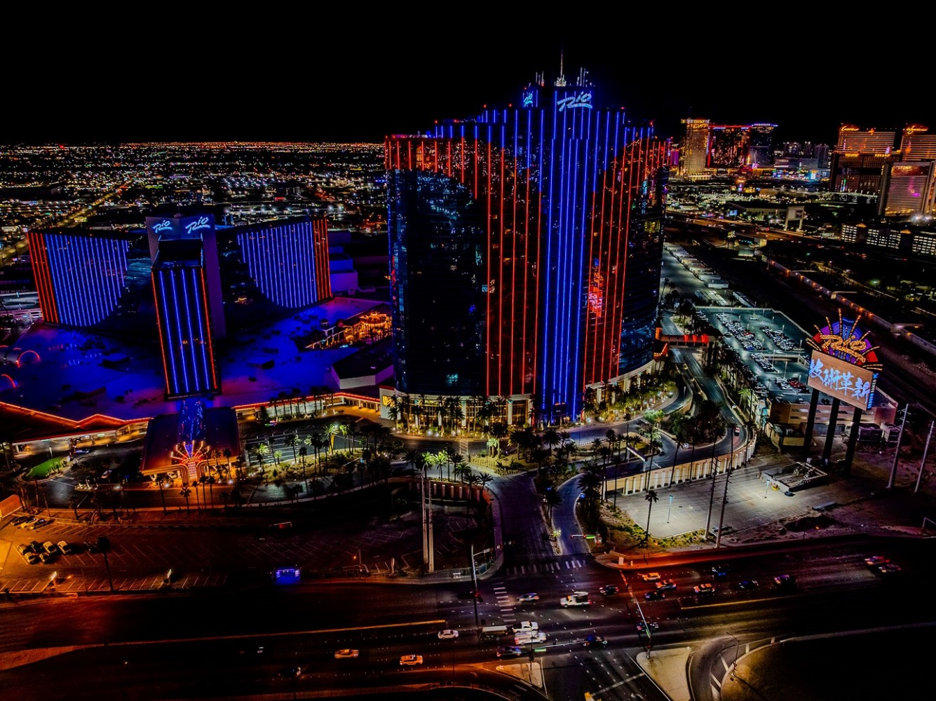 This involved outputting lighting in a video-centric format, enabling micro-manageable levels of detail to be accessed for each vertical LED strip, with some over 4,000 pixels long. The Rio’s lighting scheme is part of an ongoing multi-million-dollar refit to the resort being managed by Dreamscape Companies. The new LEDs replace 3.6 miles of old neon that had been in residence since the 1990s.