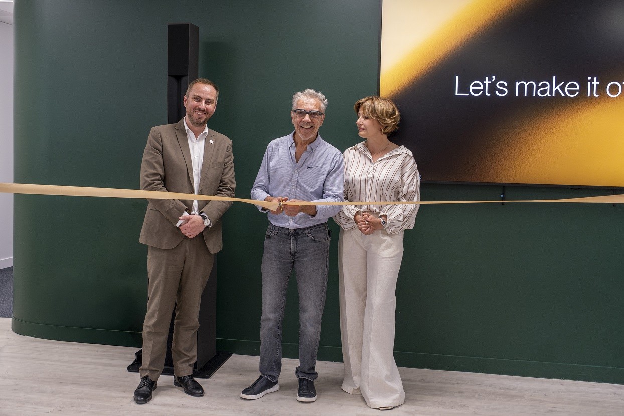 Pictured: Gérald Yven, Christian Heil, and Anne Hamlet (left to right) at the grand opening of L-Acoustics’ corporate office in Massy, France; Impressions from the corporate office in Massy and the L-Acoustics Innovation Center in Kentish Town, London. (Photos: Christophe Coulmy/L-Acoustics)