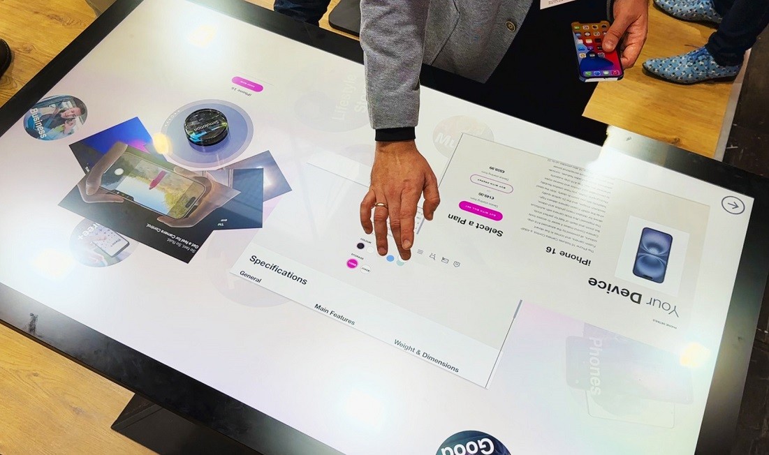 Mittels innovativer Technologie ist es dem Bildschirm möglich, physische Objekte zu erkennen, die auf seiner Oberfläche platziert werden, was neue Möglichkeiten für interaktive Anwendungen wie das Auslösen von Inhalten, basierend auf Objekten, oder verbesserte Produktvorführungen schafft.