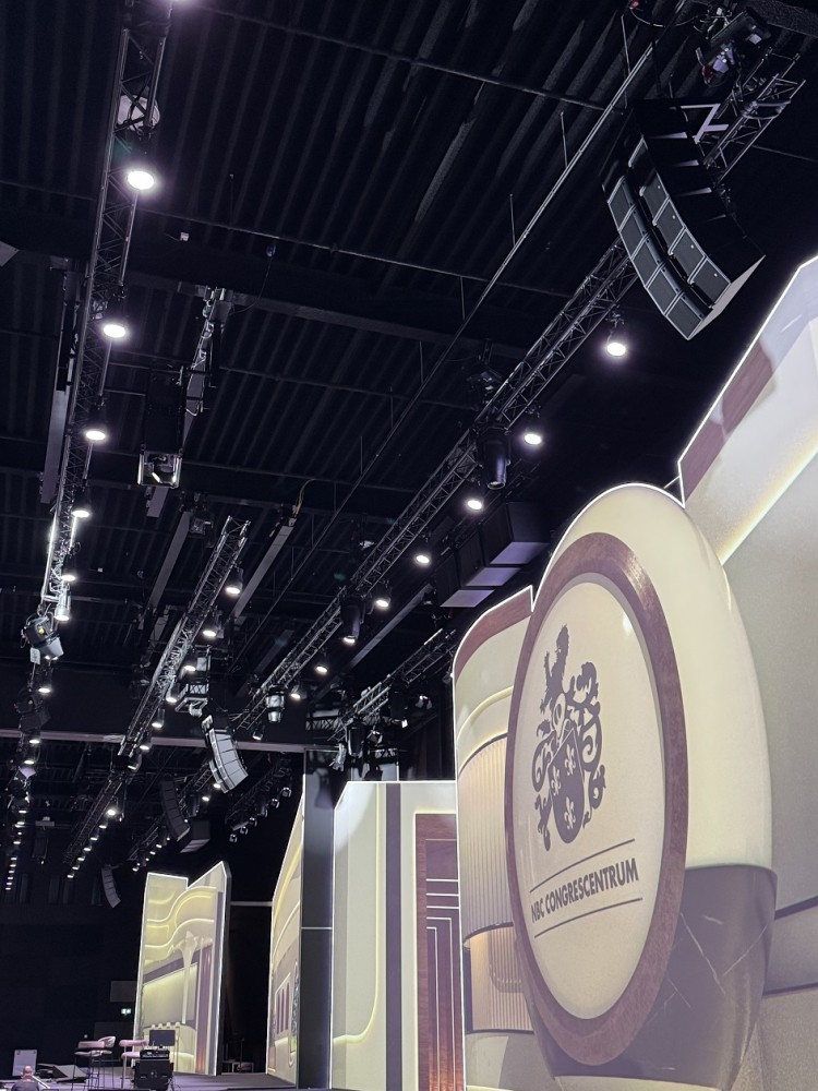 L-Acoustics Certified Partner AudioBizz collaborated with René Doeser, project leader for the NBC from Dutch system integrator Avex. “We created a unique design where two large event halls can function independently or combine into one cohesive space”, explains Edwin Lam of Avex, who worked with AudioBizz to engineer the system using L-Acoustics Soundvision software. “When the dividing wall is removed, four carefully positioned line arrays work together as a unified sound solution.”