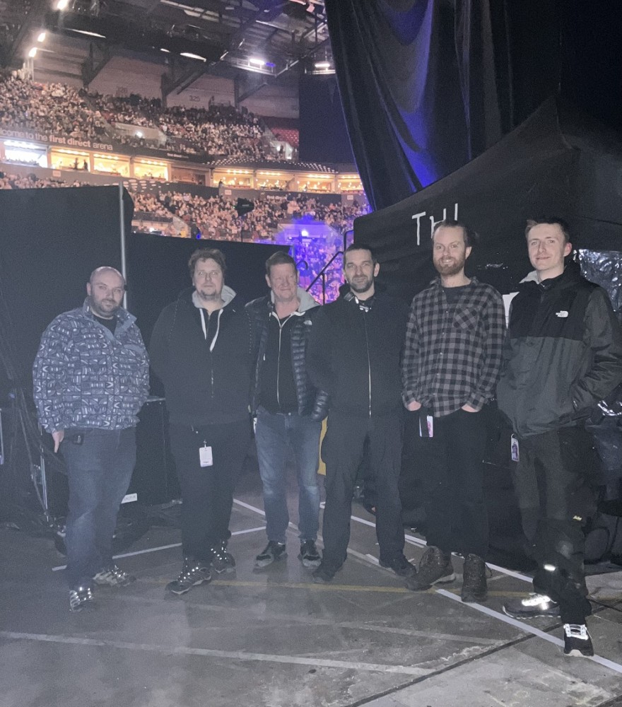 Group of six (left to right): Iain Harvey, Albert Crick, Ian Lidstone (Video Crew Chief), Vits Kybartas (LED Tech), Dylan Etherington, Ben Beverley (LED Tech).