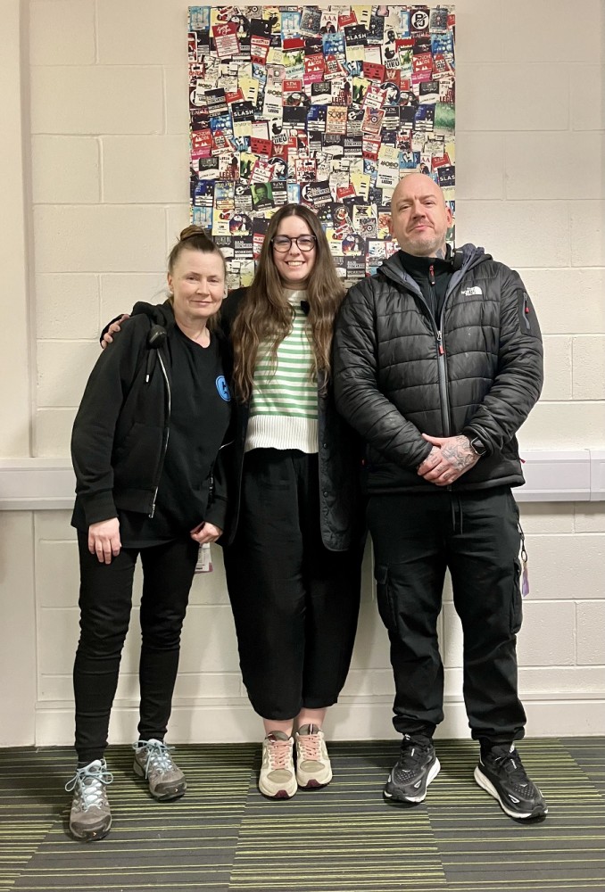 Group of three (left to right): Sarah Hollis, Sophie Kemp, Michael “Shivers” McGuire.
