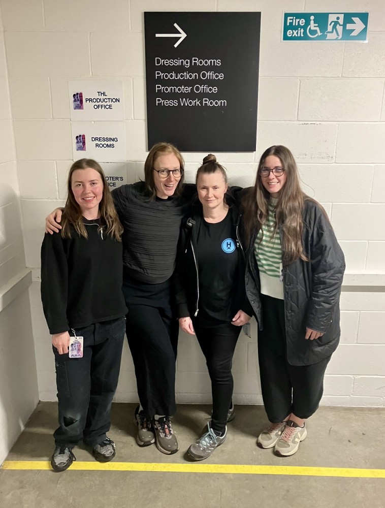 Group of four (left to right): Lucy Gallagher (Set Carp), Kerrie Burke-Avery (Wardrobe, Band PA), Sarah Hollis, Sophie Kemp.