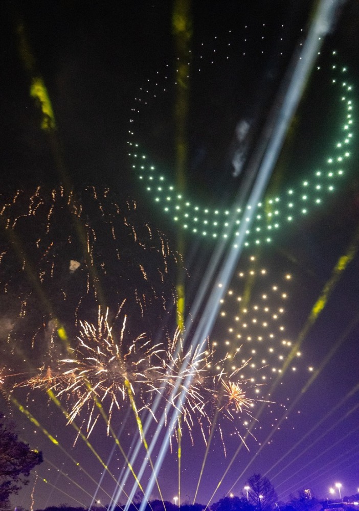 The opening night celebration was a grand affair, with dignitaries, donors, and Medal of Honor recipients in attendance, along with local citizens of Arlington. The nighttime spectacle - entitled “Mission to Inspire Spectacular”, and produced by Dallas-based corporate and event production company Corporate Magic - featured a 360-degree display of fireworks, drones, storytelling, and live performances, all supported by an immersive lighting design by Ryan Stumpp, Principal at Cue 13 Design.
