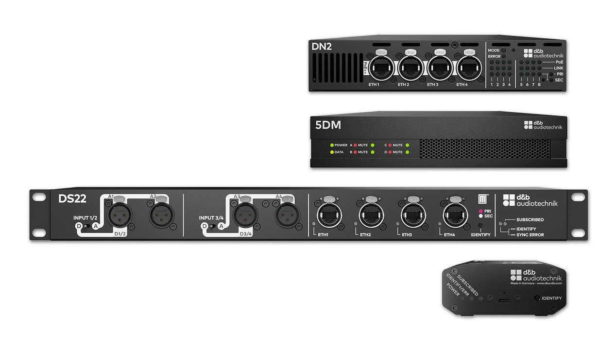 d&b Audiotechnik gibt die Einführung vier neuer Milan-fähiger Produkte bekannt. Die Audio-Netzwerk-Bridge DS22, das USB-Milan-Interface DS1, der Milan-fähigen Verstärker 5DM und der AVB-Switch DN2 ermöglichen die Realisierung skalierbarer, robuster und zukunftsfähiger Soundsysteme.