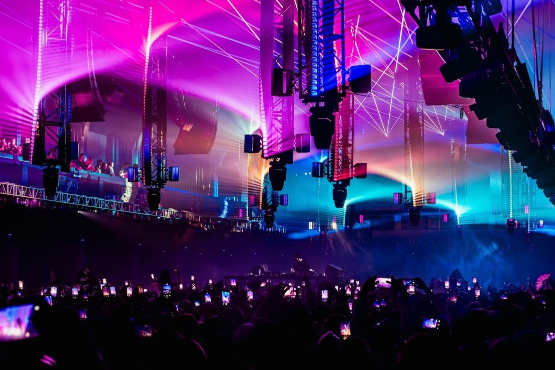 “The idea for the stage design came from Subtronics (Jesse) wanting to perform in the round”, Mahowald explains. “Once we committed to that vision, and a no-video show, I saw it as a chance to focus on the color of our light as the main visual tool. Using fixtures like the Colorado PXL Curve helped us create dynamic, architectural looks that surrounded the whole room. Since the show was in the round, we were able to double-side all the vertical lighting trusses. This gave us large, sweeping visual moments that looked great from every angle.”