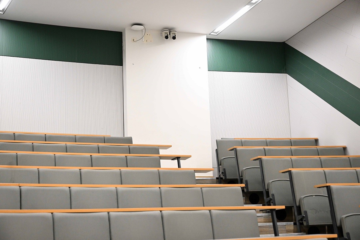 The theatres, in the CCE1 building, host up to 400 attendees and are designed for both teaching and commercial hire, supporting conferences, talks, and large-scale events. The camera solution was to provide automated presenter tracking and high quality capture for live-streaming and recording.
