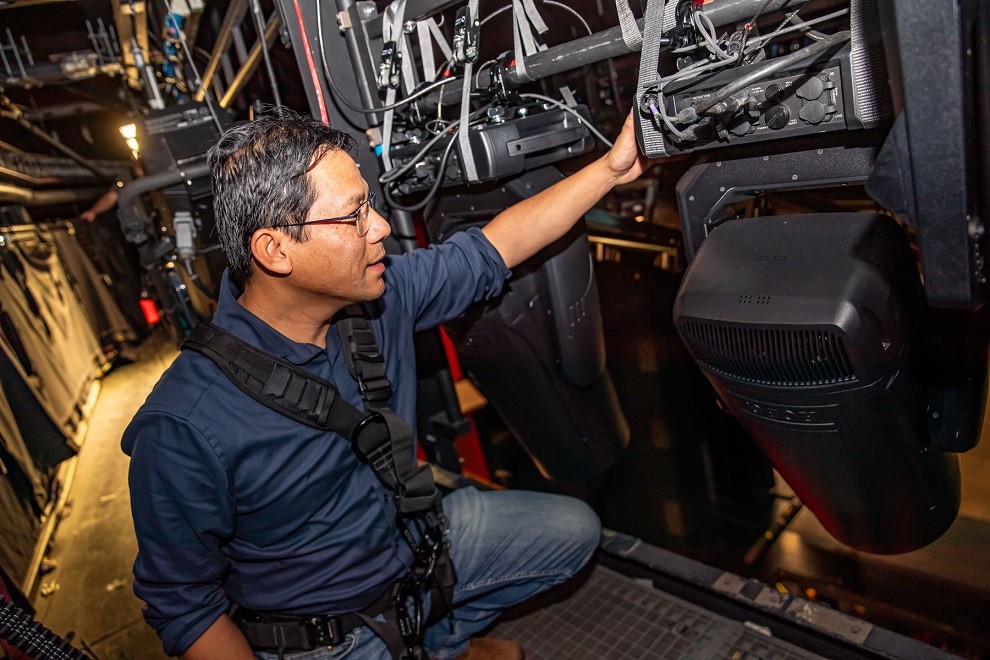 TMS designed and supplied the new lighting system and supporting infrastructure. With help from Elation regional rep William Irwin, they organized a demo and shootout that led to selecting the KL Core IP as the optimal choice. The KL Core IP features a 400 W RGBMA LED engine and can be adapted as an ellipsoidal, Fresnel, or monolight. Its compatibility with third-party shutter barrels allowed TMS to repurpose barrel mounts from the venue’s existing Source Four fixtures and attach them to the KL Cores.