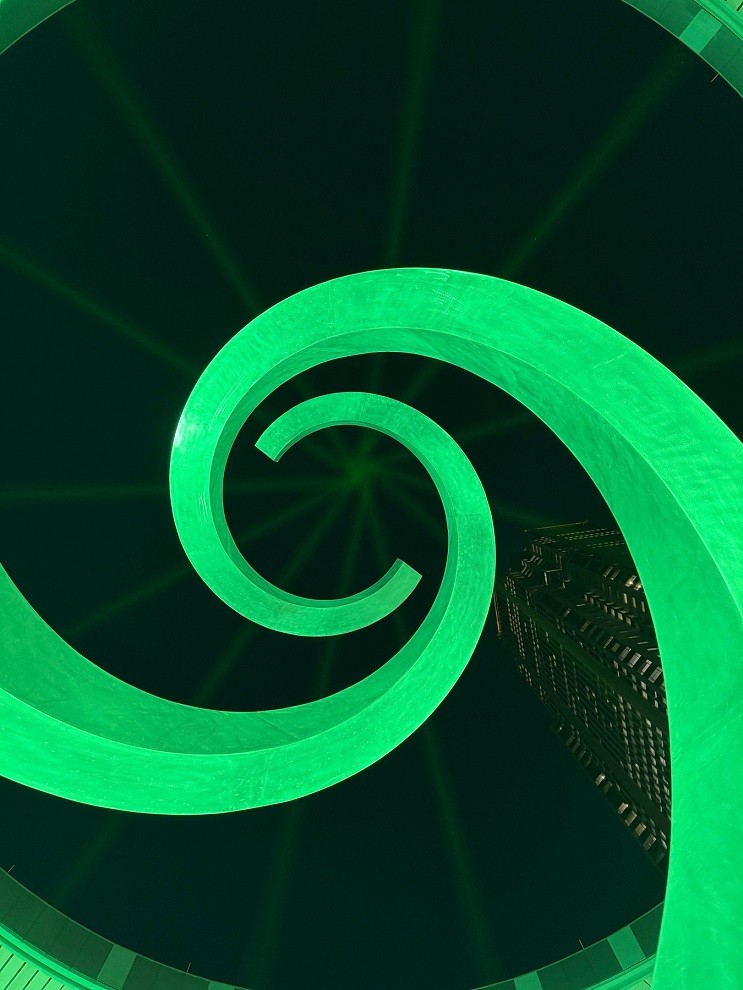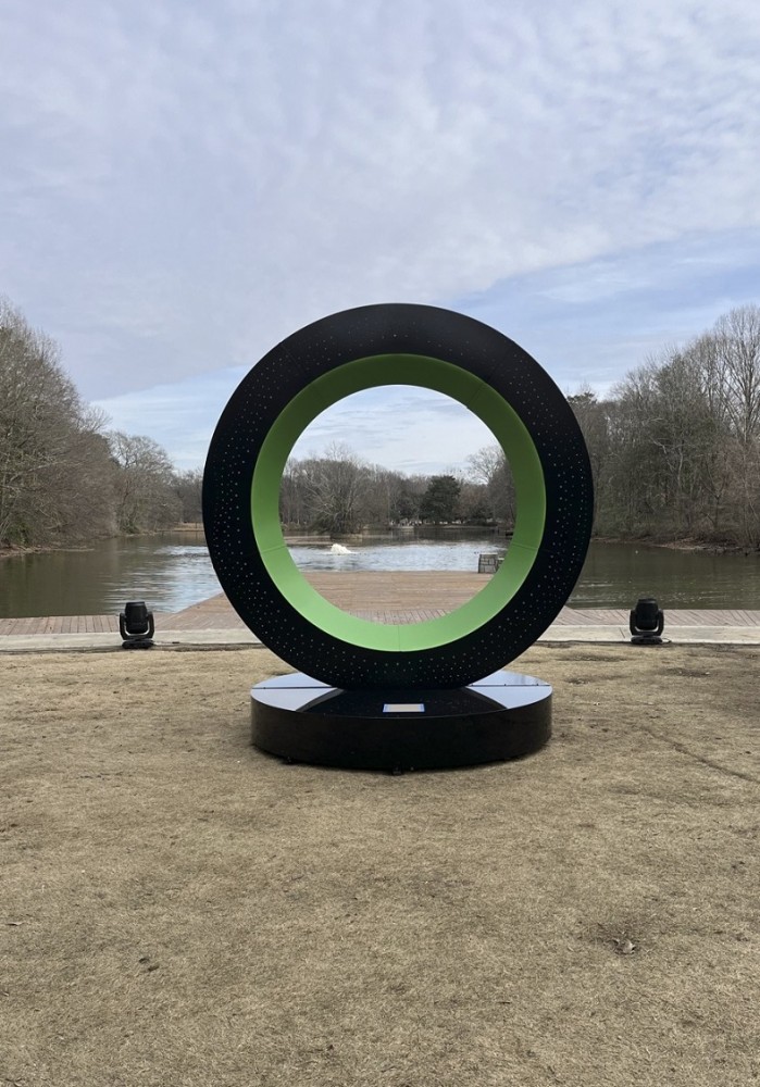 The 32 sites spanned metro Atlanta and into Central Georgia, including hospitals, clinics, pedestrian bridges, and non-Emory landmarks like water towers and the AT&T building in Atlanta, all bathed in “innovation green”. While the portals remained in place for weeks, the Elation lighting activation itself was a one-night-only event.