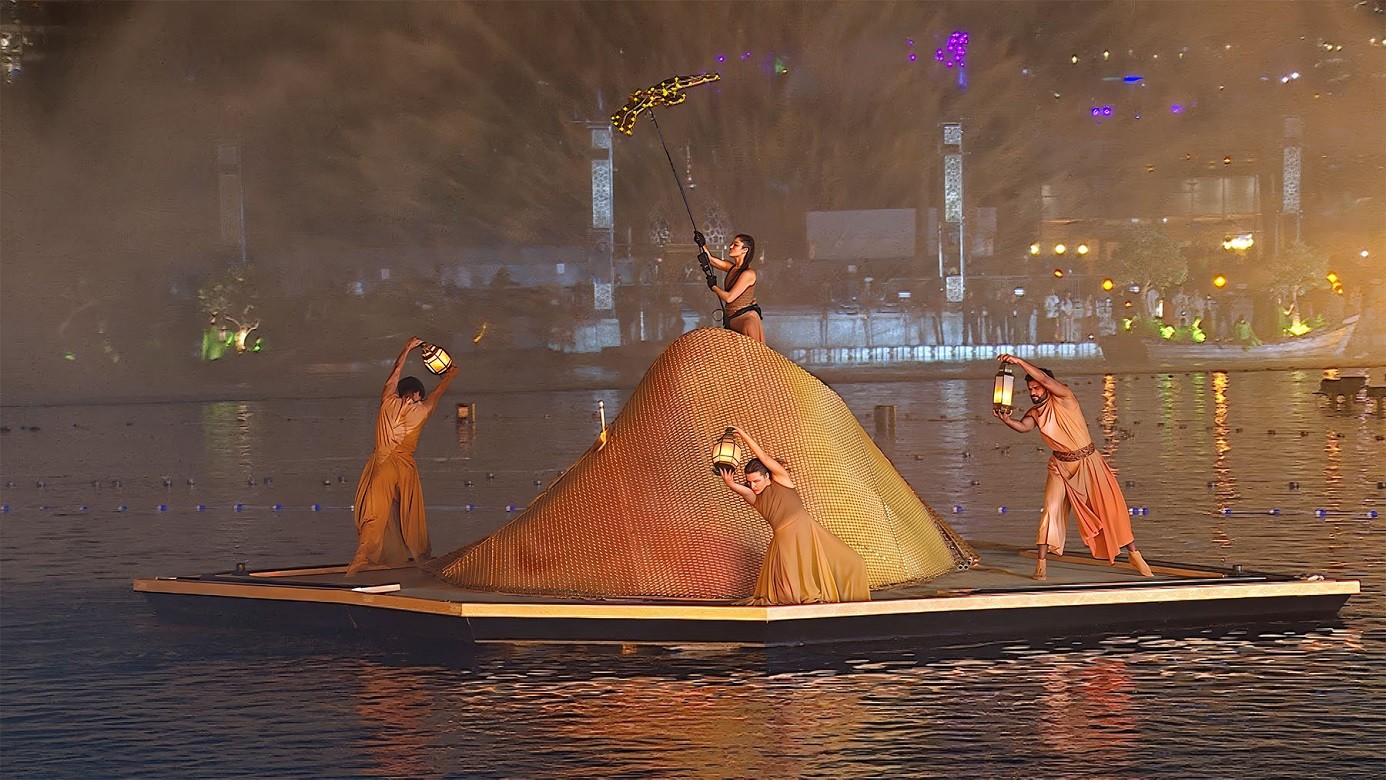 Robe was also part of it, with eighty-six iForte LTX fixtures on the lighting rig for a spectacle staged on the Burj lake that led into the fireworks, lit by Dom Smith and Paul Johnson from UK-based design studio NeonBlack. The Burj Khalifa NYE event this year started with this dramatic, full-tilt 20-minute show staged across a 450-metre open performance space on a large section of the Burj lake in front of the 828-metre-high building that dominates the downtown Dubai skyline. Twenty-five custom floats, boats, waterboards and jet-skis were involved - with a cast of 570, including a tightrope walker traversing a high-tension cable strung between points of the adjacent shopping mall - in the performance.
