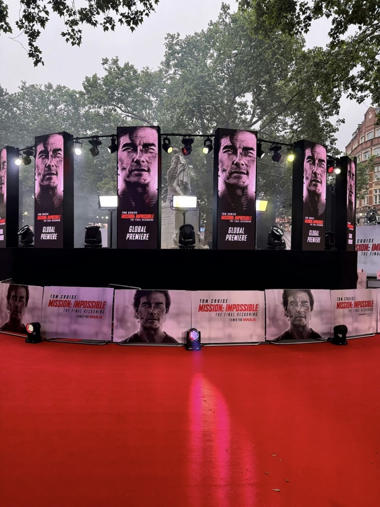 Included in this collection were over 460 REM 3IP LED video panels. Displaying images from the film and its stars, the panels were positioned across a 50-meter main platform, as well as on branding walls around a custom-built fountain and entrance arch, all with 3D design and full safety sign off.