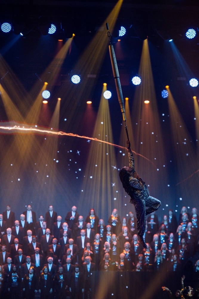“Due to the artist’s pregnancy, I had to simplify many things in the concert, especially her flying and her movement on floating objects”, explains Hruska. “I only kept a tilting cross with stairs and a railing that she could climb onto without fear. The choreographer had to simplify the choreography, basically Olga did not have any major choreographic movements and we transferred all the movement to the dance company.”