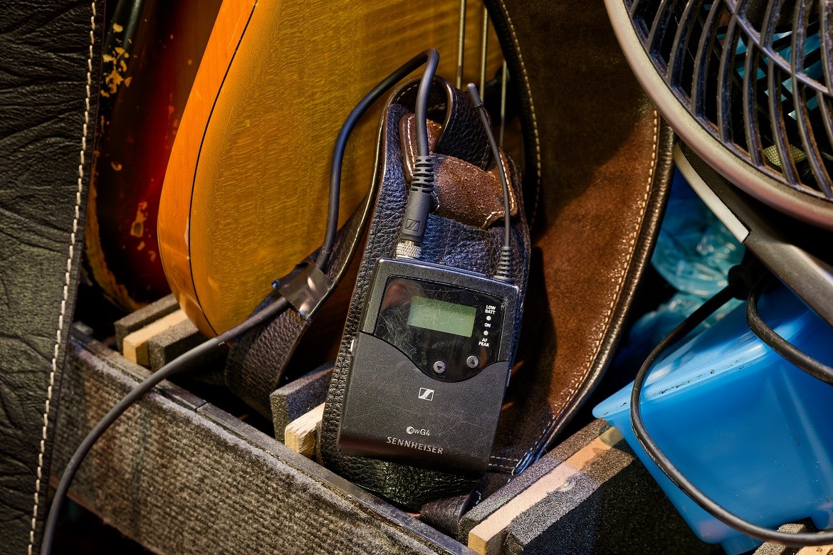 Neben den E 906 nutzt Römer seit Jahren einen EM-2050-Doppelempfänger aus Sennheisers 2000er-Serie. „Es ist zwar nicht das allerneueste Digitalmodell, im Touralltag aber eine absolut stabile Funkstrecke“, kommentiert er. „Jede meiner Gitarren ist mit einem eigenen Taschensender bestückt. Beim Instrumentenwechsel wird der Sender der abgelegten Gitarre auf Mute geschaltet, während mein Roadie den Sender der nächsten Gitarre aktiviert. Es ist ein eingespieltes Vorgehen, das schnelle Wechsel erlaubt und Bedienfehler reduziert. Ich habe verschiedene Sennheiser-Taschensender im Einsatz, deren Klangbild jedoch weitgehend identisch ist. Die Pegeleinstellungen jedes Senders sind präzise auf die jeweilige Gitarre abgestimmt, bei einzelnen Instrumenten ist zusätzlich die integrierte Kabelemulation aktiviert. Auf die Bewegungsfreiheit, die mir die Funkstrecken ermöglichen, möchte ich nicht mehr verzichten. Klangunterschiede gegenüber einer klassischen Kabelverbindung sind im Live-Betrieb praktisch nicht wahrnehmbar.“
